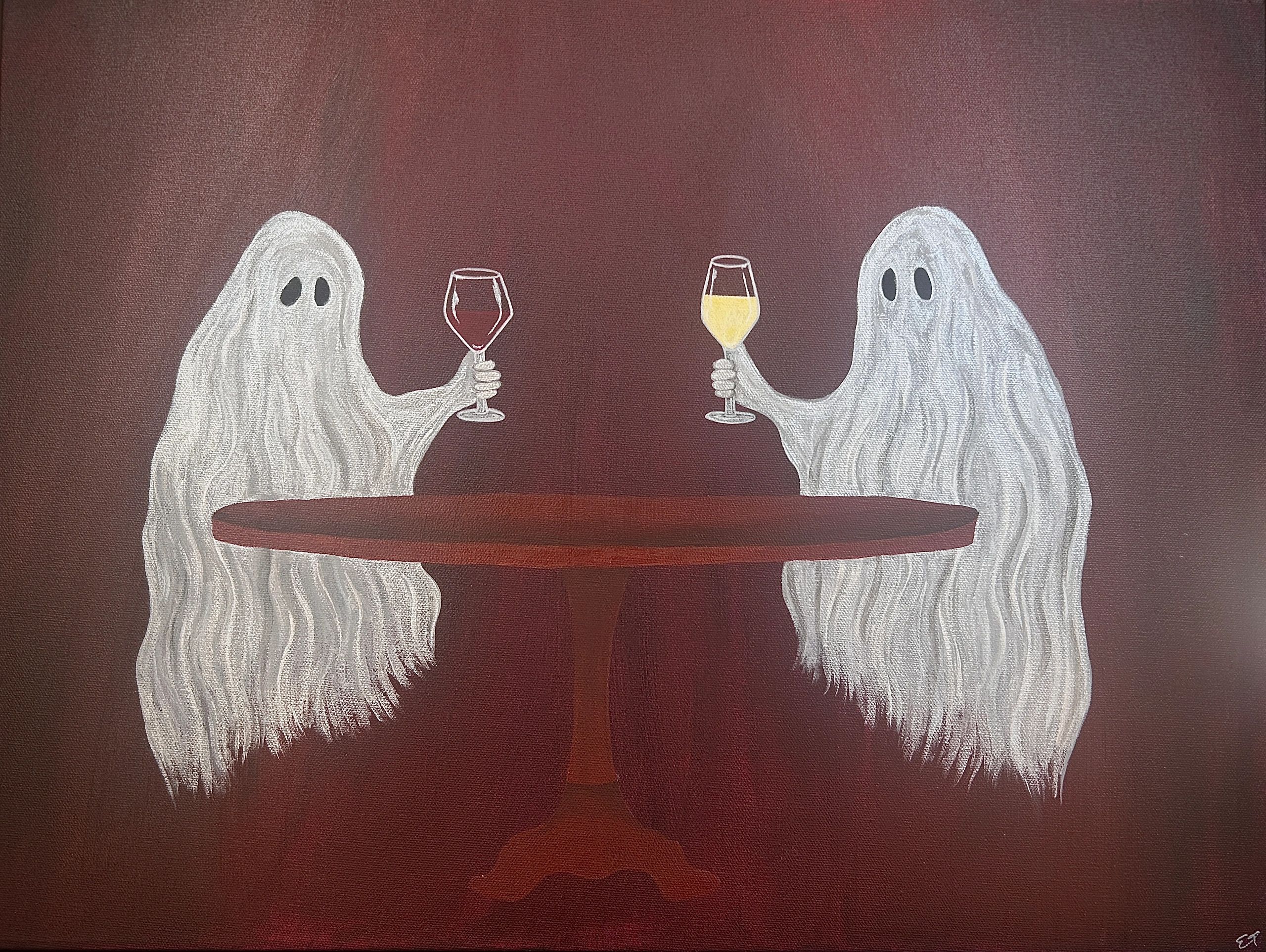 Are we all haunted by something or someone? Do we wish we could turn back time to a specific memory with someone? These ghosts represent past versions of two people. Overtime we change, evolve, grow, etc. And sometimes we are not the same person we once were in the past.